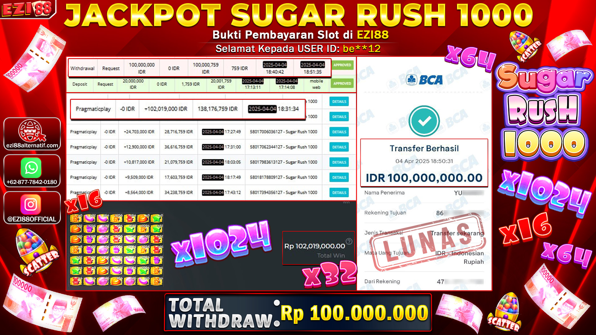 Los jugadores que cumplan los requisitos pueden aprovechar la función de compra de bonos en la tragamonedas Sugar Rush 1000, que incluye una nueva opción exclusiva para esta nueva entrega. Puedes pagar 100 veces tu apuesta para desbloquear la ronda de bonificación estándar, que se activa al obtener 3 o más ganancias con símbolos scatter (RTP 96.52%), como antes.